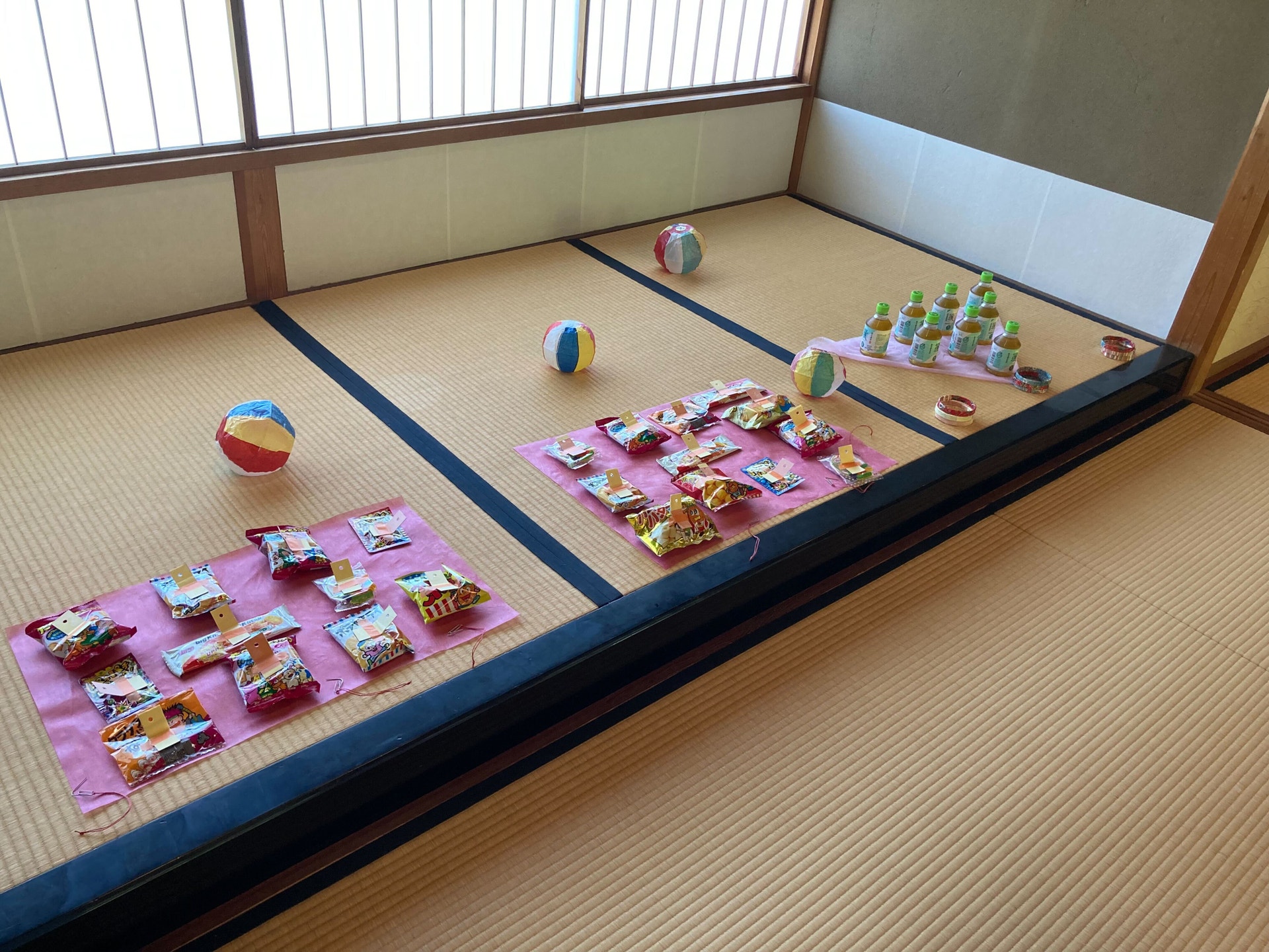 そしてせっかくの浴衣!「浴衣だからこそできることは?」ということで、お祭りっぽい演出で、@サトウ さんが作ってくれた「お茶をとる輪投げ」と「ヨーヨー釣りならぬお菓子釣り」!
