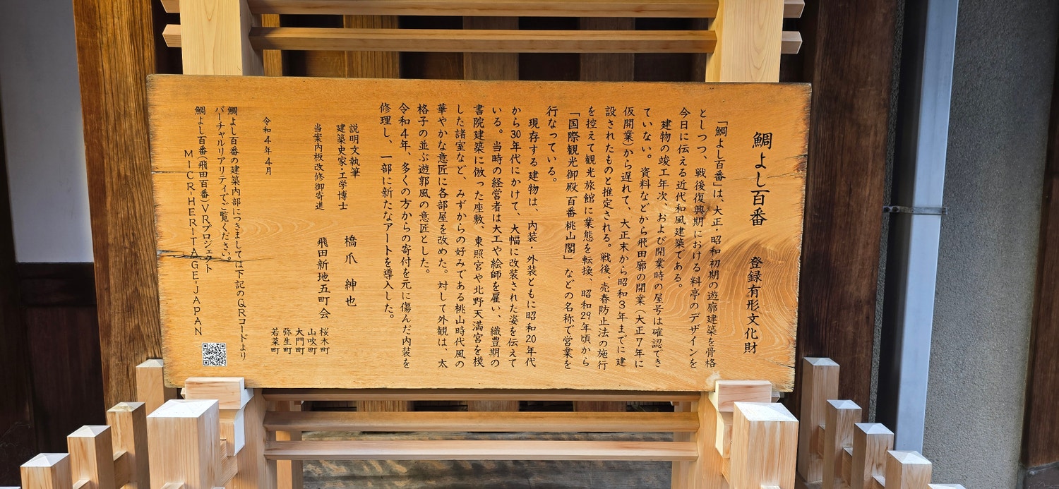 開催場所は、大阪の飛田新地にある、登録有形文化財のお食事処「鯛よし百番」です。