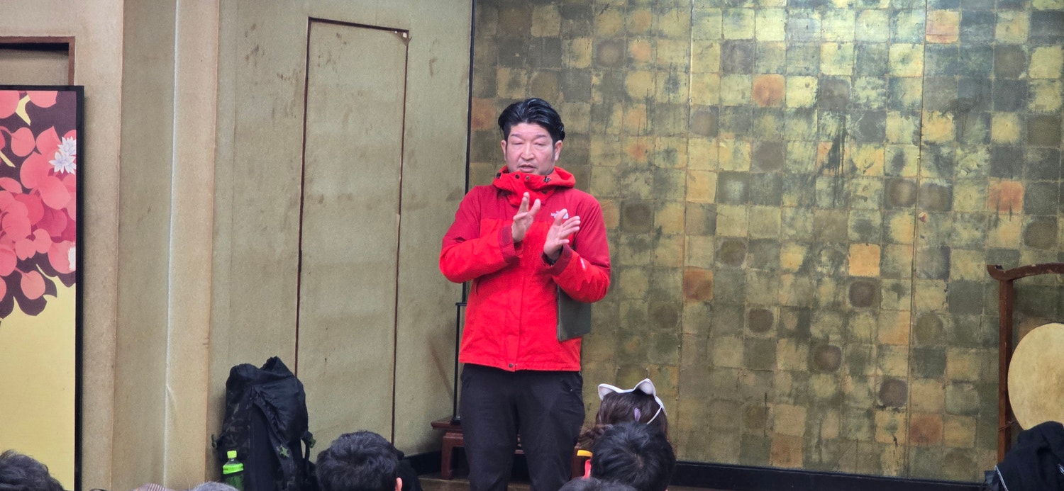 司会の説明後、読書会の前に、この飛田新地の場所の説明や、鯛よし百番の説明・内装の説明をしていただきました。