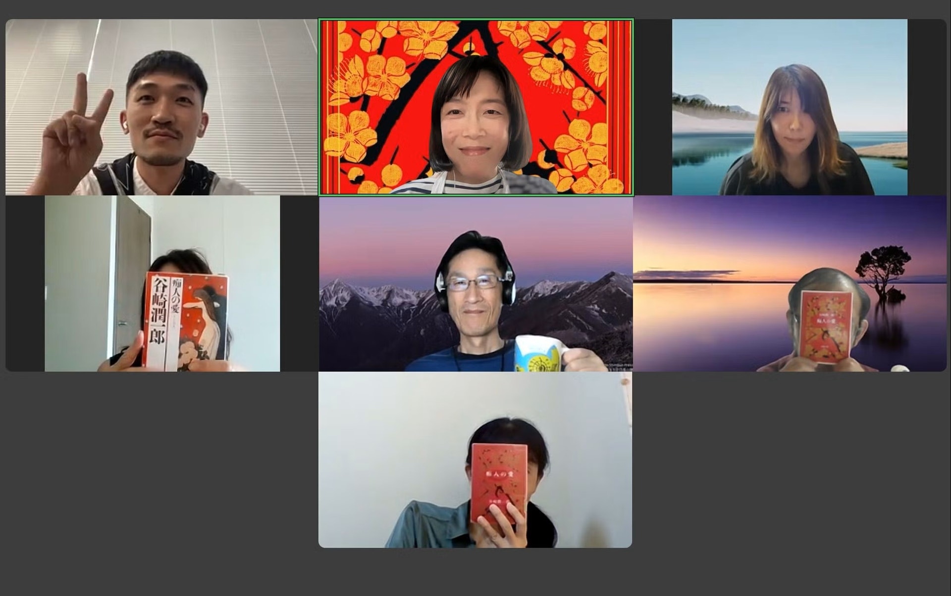 各地の会場の様子をハイライトでご紹介します。ハイブリッド読書会では、読書会を盛り上げるお遊びとして会場テーマを設けています。今回は課題本「痴人の愛」の主人公の2人が出会ったカフェーにちなみ、「カフェ」がテーマ。