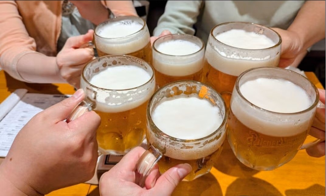 こちらもティーバッグとお菓子でお茶会の雰囲気で。懇親会ではビールで乾杯。