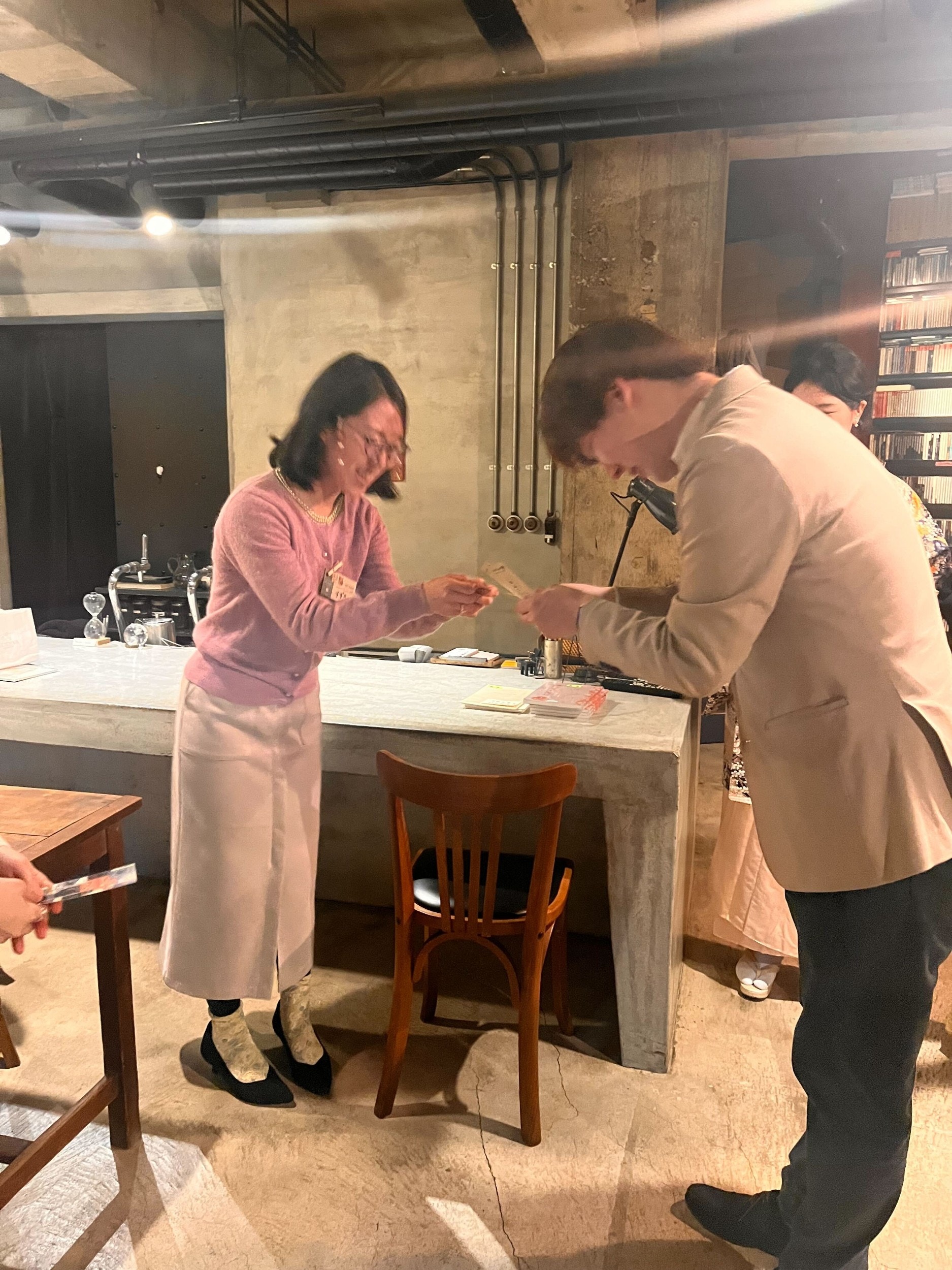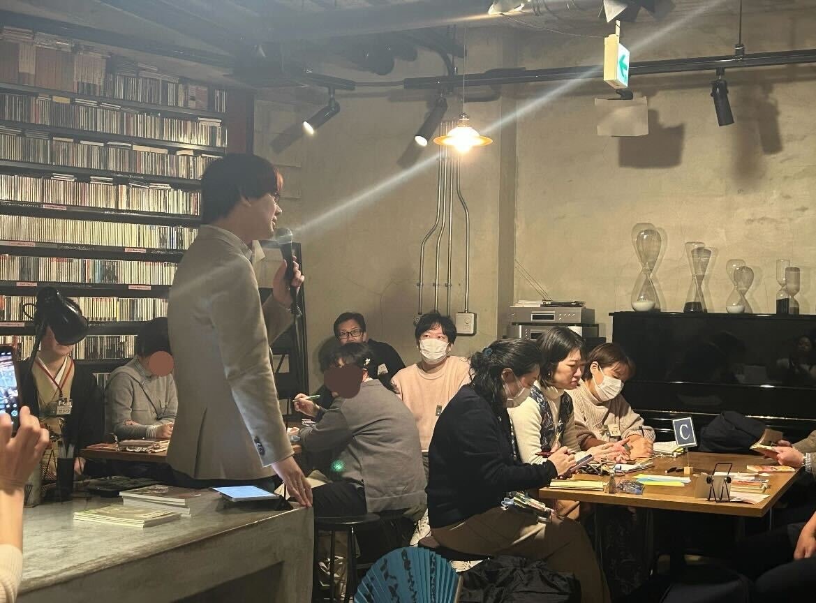 スケザネさんのレクチャー終了後、読書会スタートです。スケザネさんは各テーブルを回り、参加者の質問に答えてくれました。