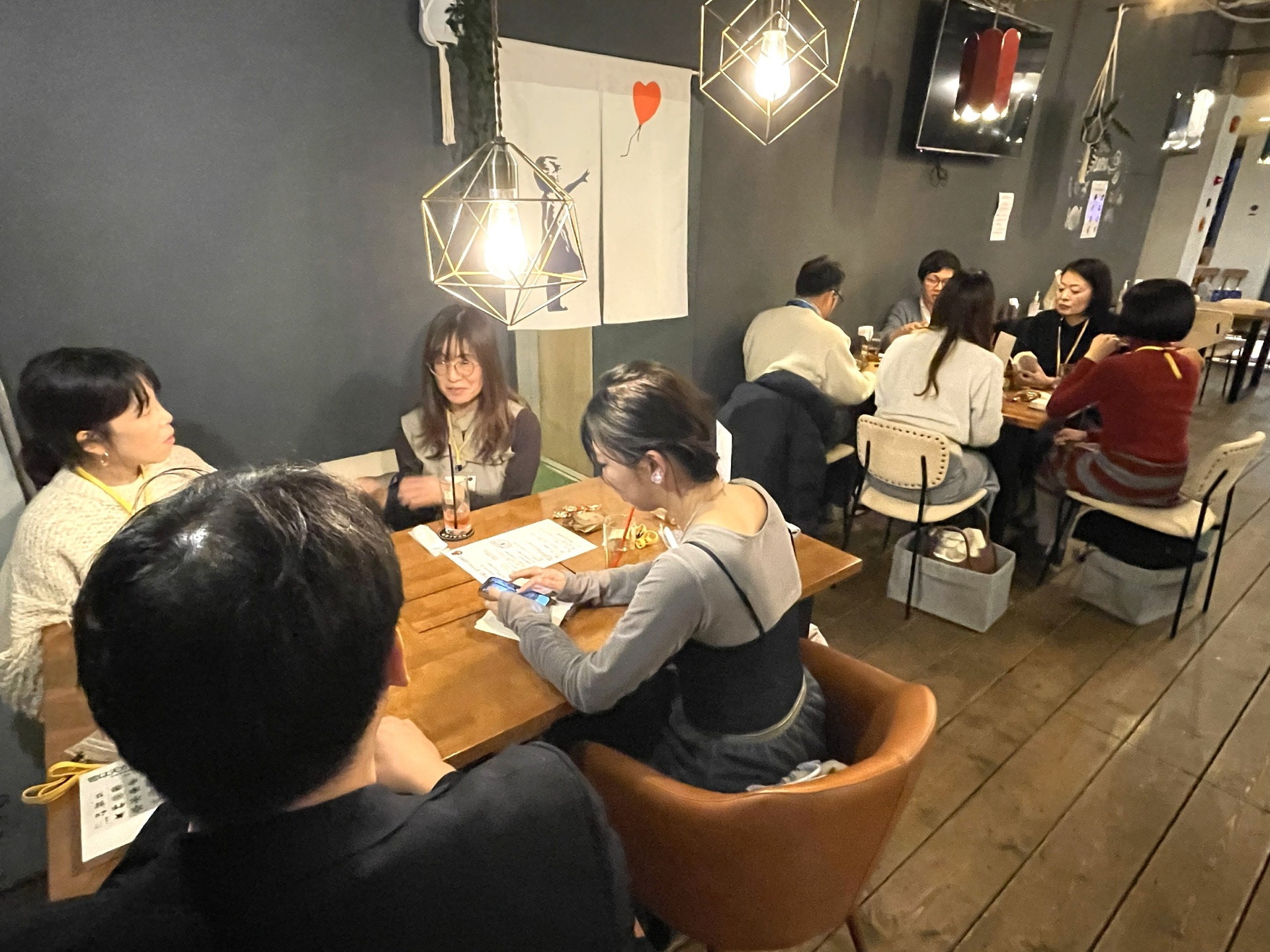 懇親会では、話したいテーマ別の席替えを行っているので、人見知りの方でも安心して話題に入っていけます。