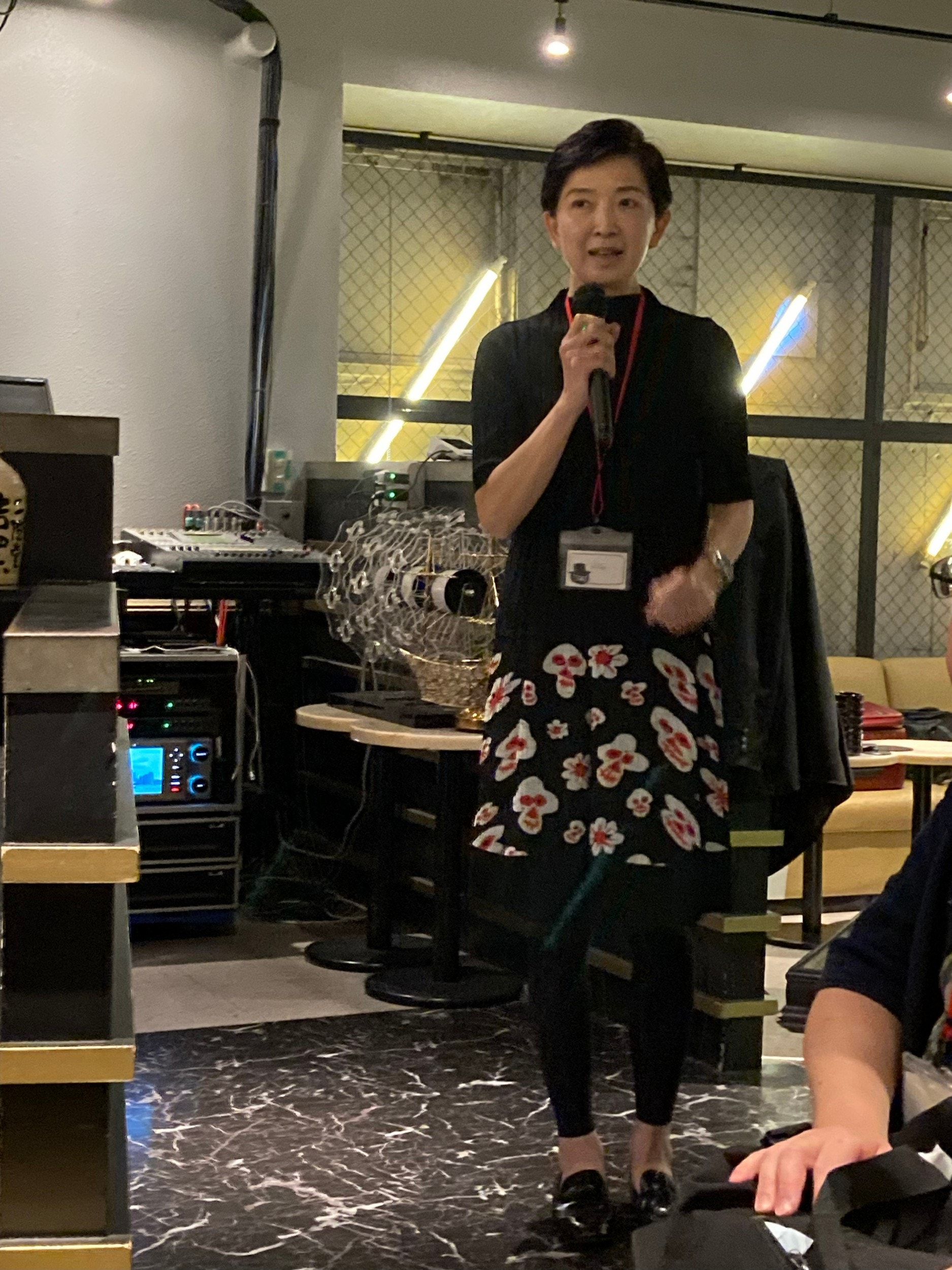 ベストドレッサー賞にはドレスコード普及委員長のチアキさんからワイングラス柄のポーチが贈呈されました。