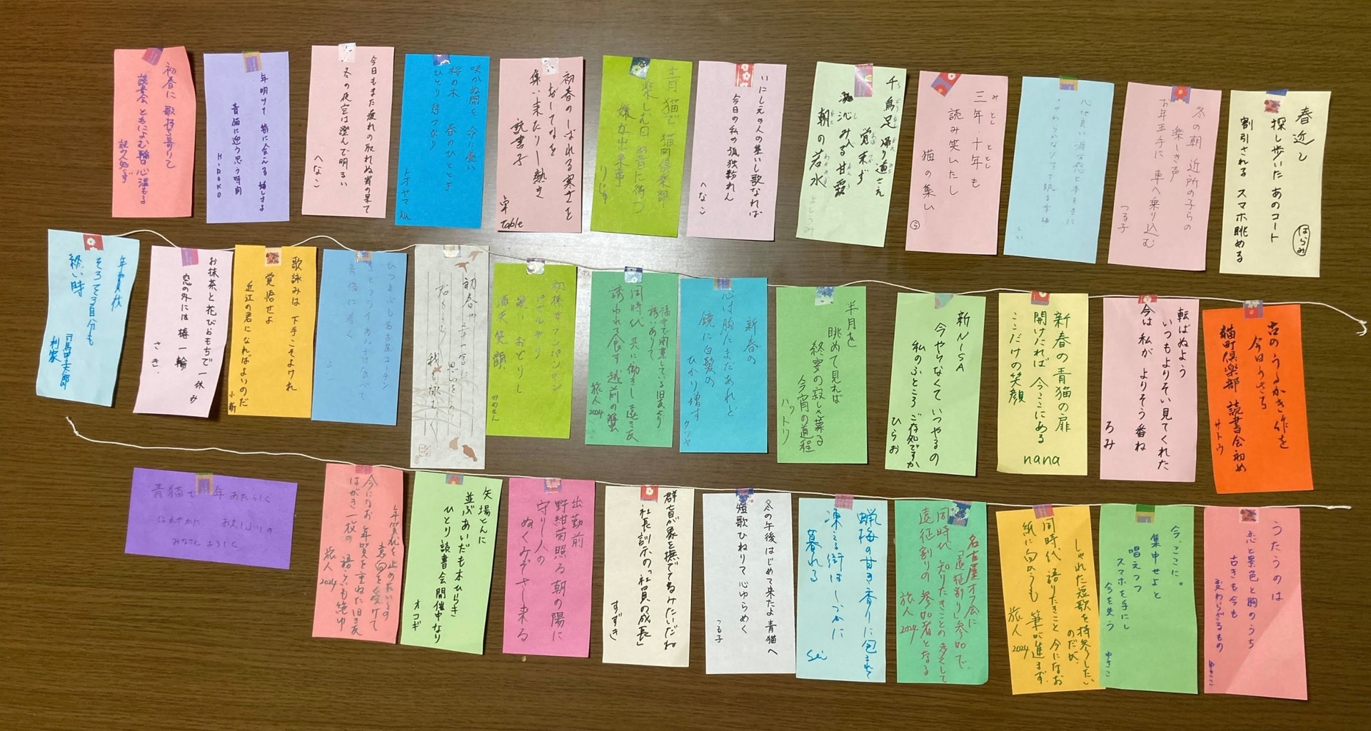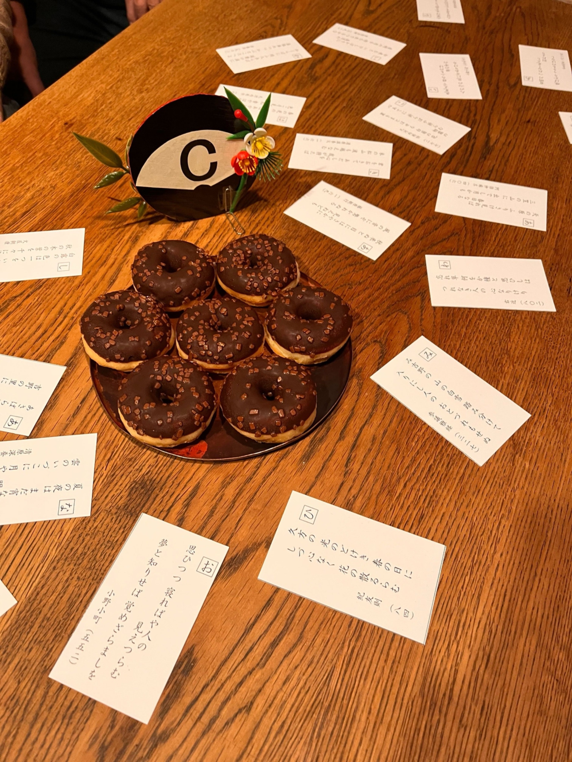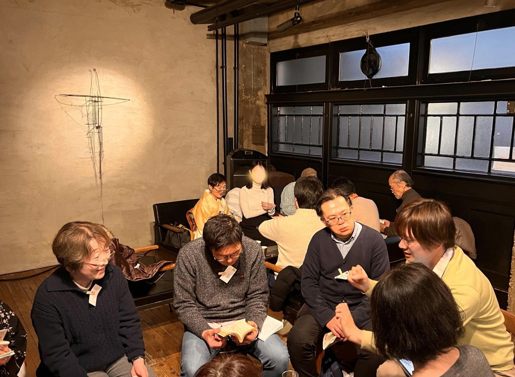名古屋オフライン2026年の幕開けは、渡辺祐真さんをゲストに招いた『古今和歌集』でした。うららかな一月の土曜日。三連休の初日ということもあり、遠方よりお越し頂いた方も多く、新年会にふさわしい賑わいを見せました。会場の飾り付けも新春の気分を盛り上げます。 今回は、課題本に絡めて、参加者の皆さんに短歌を作ってもらう企画を行いました。早めに会場に入られた皆さんがペンを片手に、指を折り折り、紙とにらめっこする姿が微笑ましかったです。