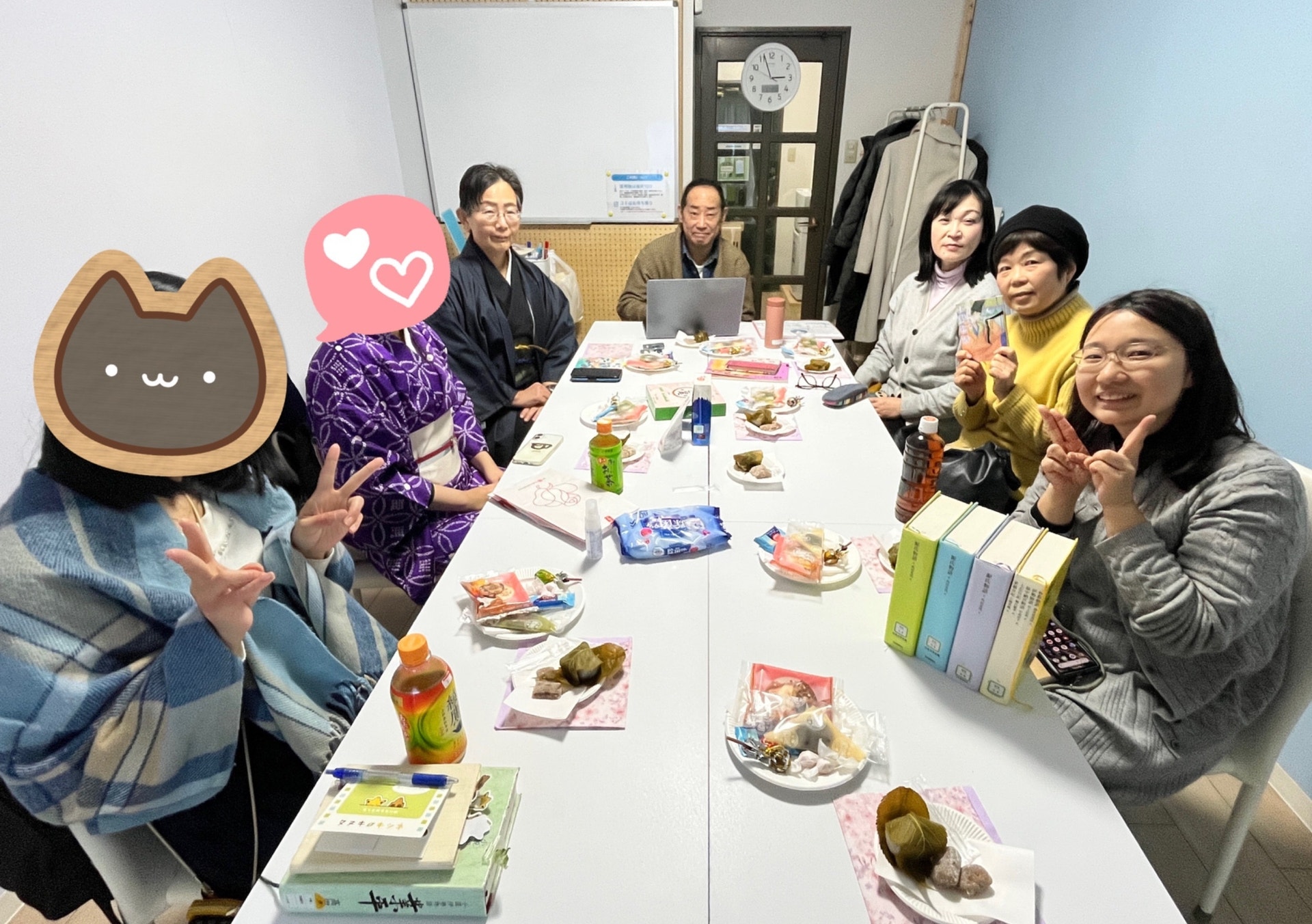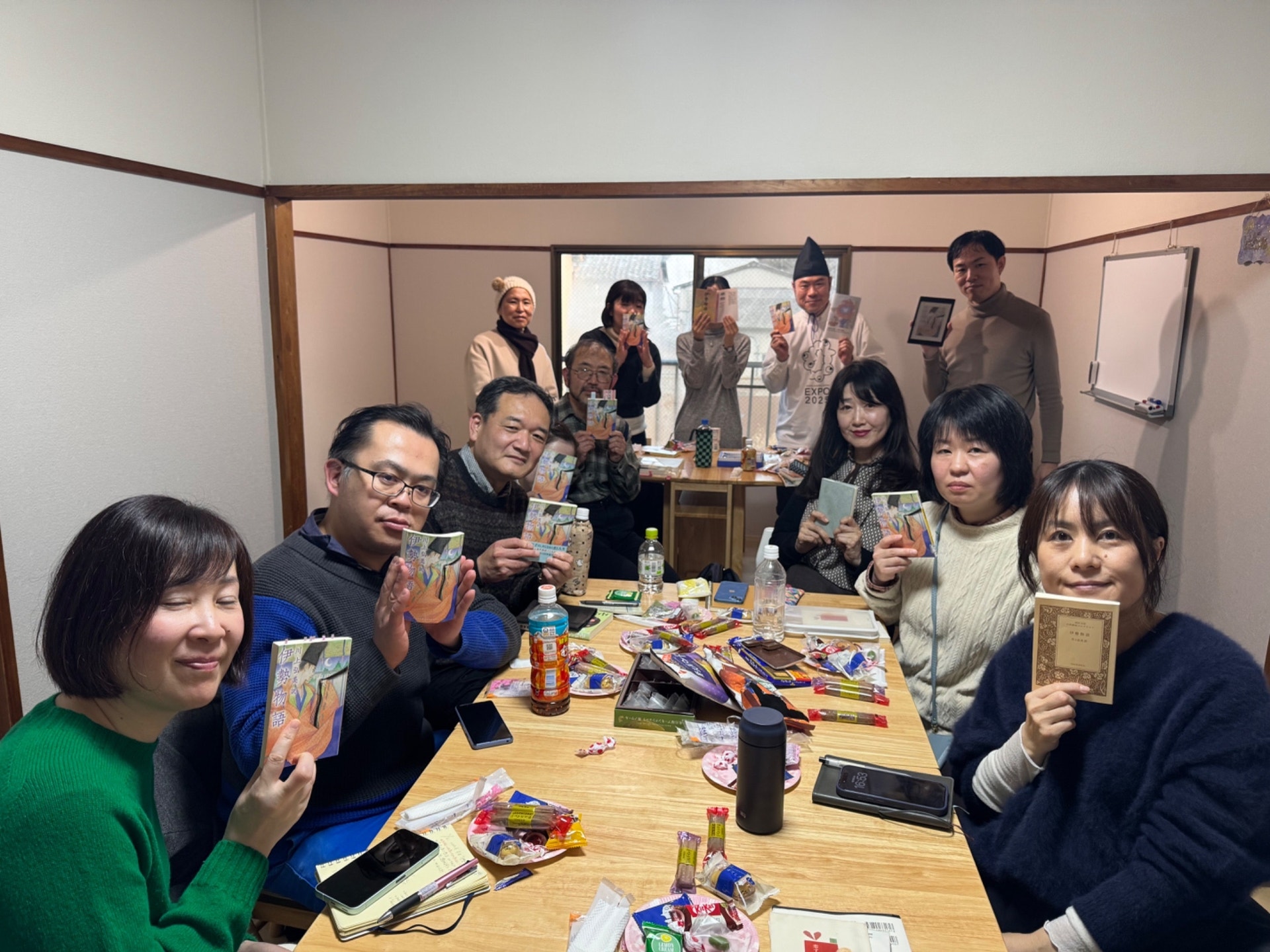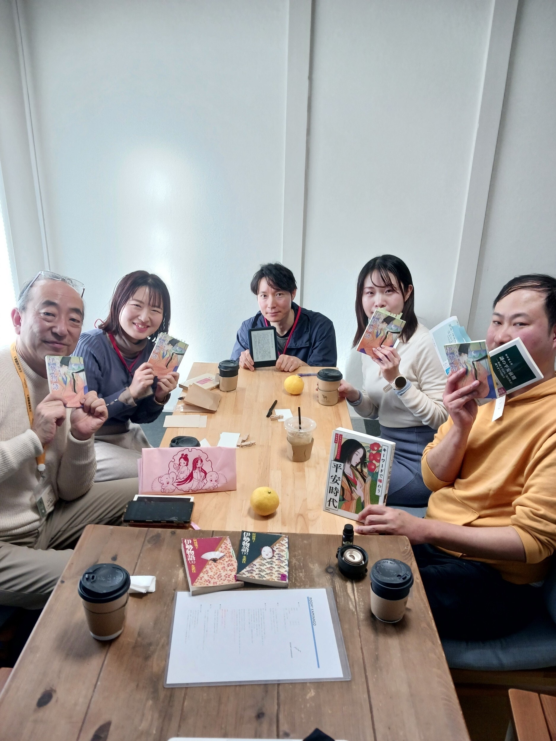 ハイブリッド読書会では、読書会を盛り上げるお遊びとして会場テーマを設けています。今回は課題本にちなんで「平安」がテーマでした。関連本やグッズ、衣装など、色々工夫がされました。そのあたりもふくめ、以下当日の様子など、ご紹介いたします!