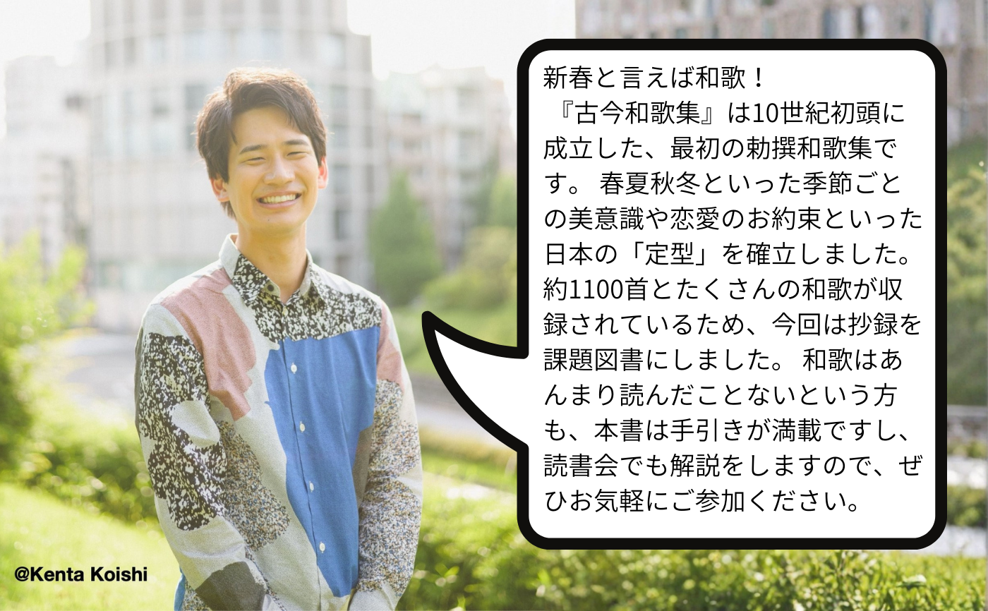 名古屋オフ読書会の新年最初の定例会では、『古今和歌集』を取り上げ、書評家のスケザネさんをお迎えしてレクチャー付き読書会を開催します